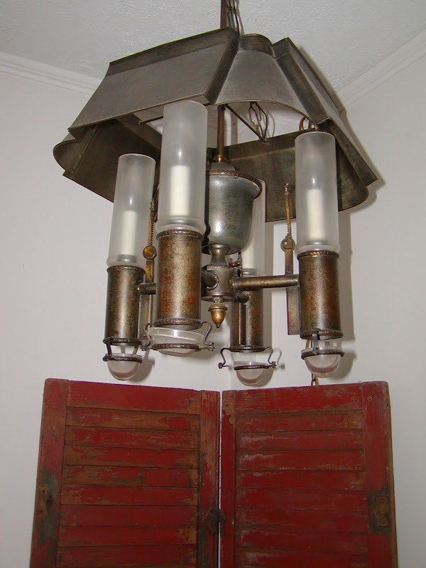 This light fixture we bought a long time ago at an auction. We did some research when we had it in our antique shop and found out it had originally held candles and was converted to electric. So we brought it home and it hangs in the corner of my living room.